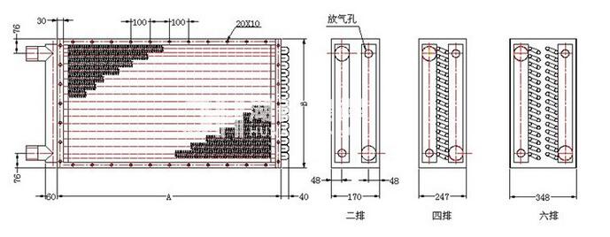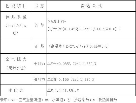 注:1:表中示散熱面積均為二排結(jié)構(gòu)面積,其余四排,六排結(jié)構(gòu)之散熱面積分別為×2,×3既得;